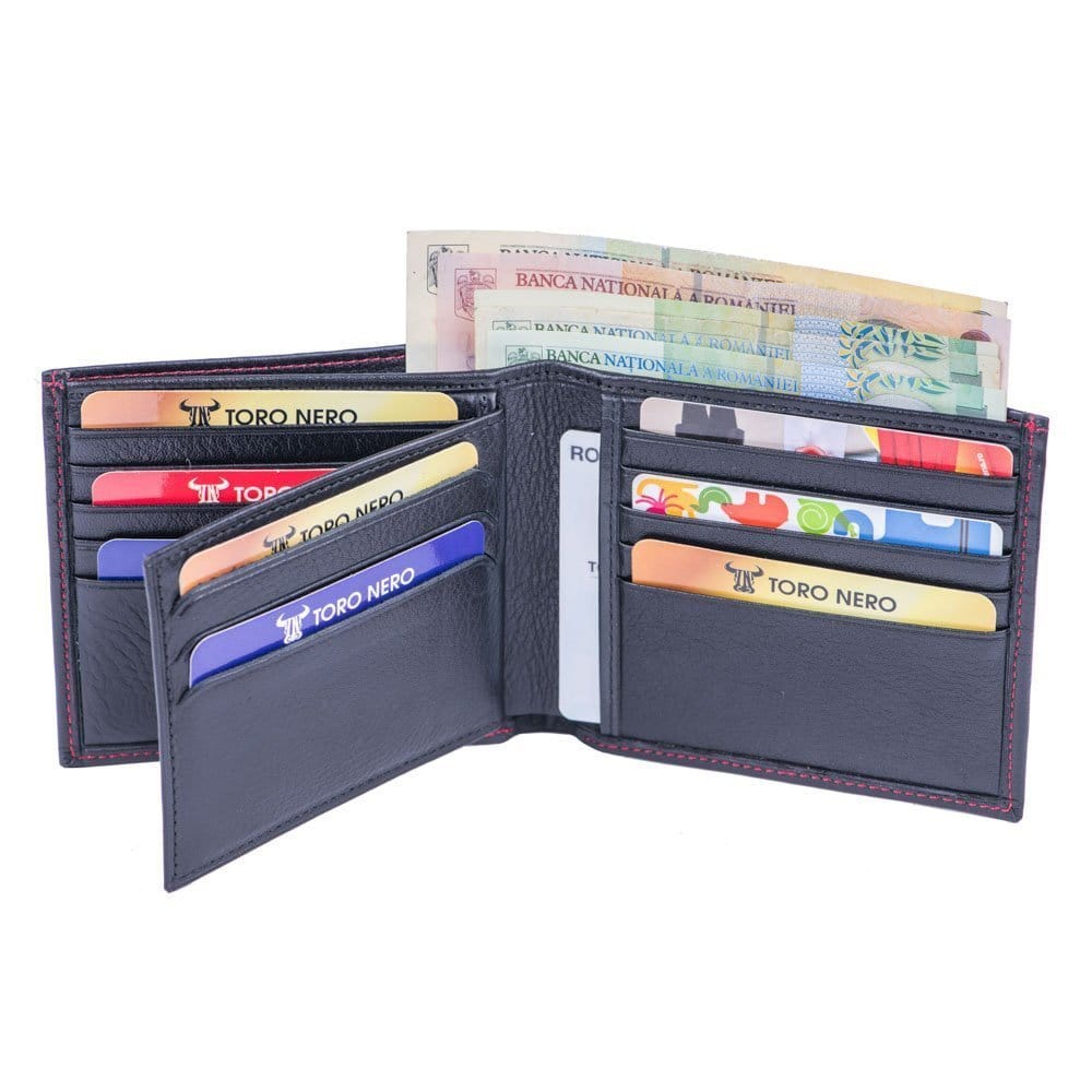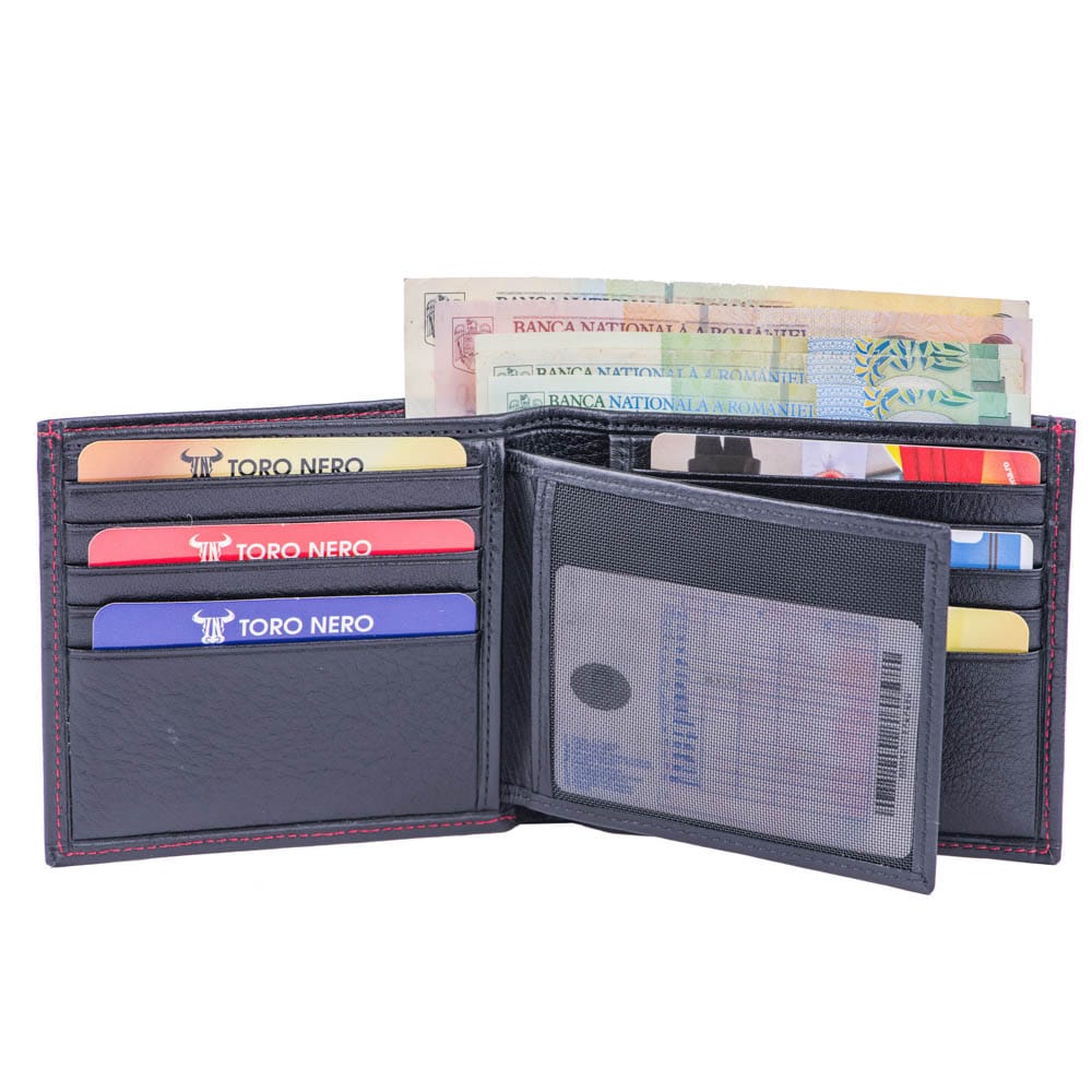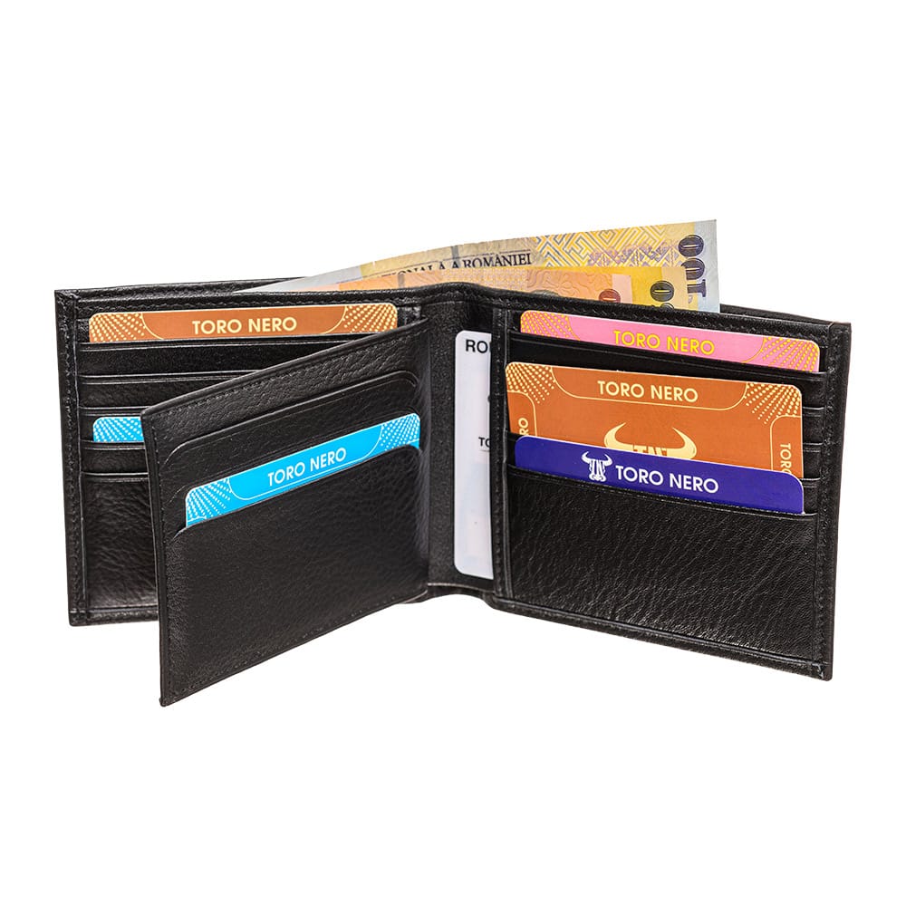 Cu acest portofel TORO NERO din piele naturală nu trebuie să îți faci griji că vei rămâne fără spațiu pentru cele mai importante lucruri din viața ta. Portofelele noastre sunt lucrate manual din piele de calitate superioară.