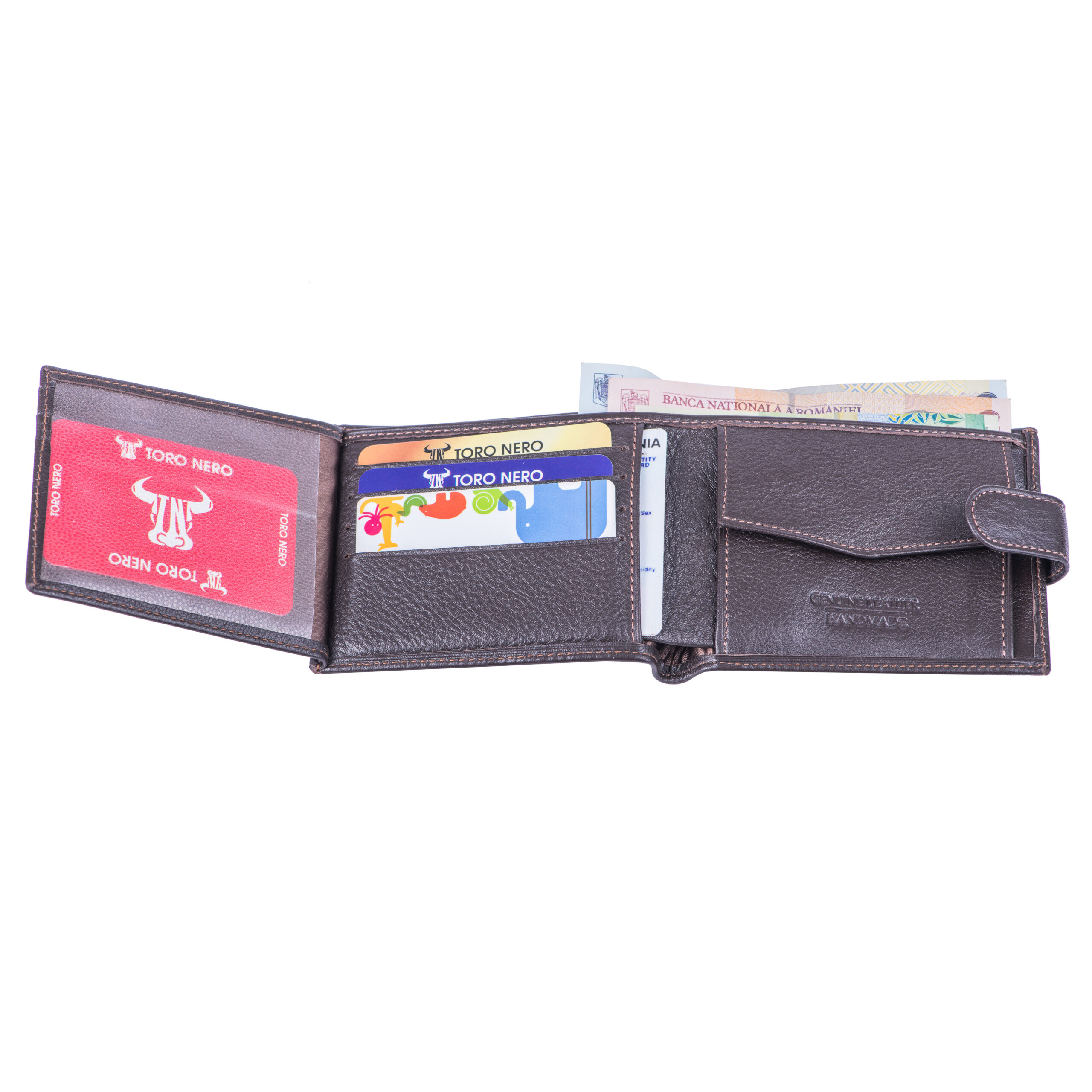 Cu acest portofel TORO NERO din piele naturală nu trebuie să îți faci griji că vei rămâne fără spațiu pentru cele mai importante lucruri din viața ta. Portofelele noastre sunt lucrate manual din piele de calitate superioară.