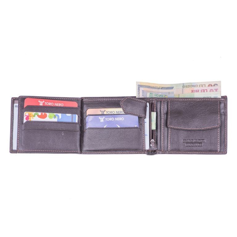 Cu acest portofel TORO NERO din piele naturală nu trebuie să îți faci griji că vei rămâne fără spațiu pentru cele mai importante lucruri din viața ta. Portofelele noastre sunt lucrate manual din piele de calitate superioară.