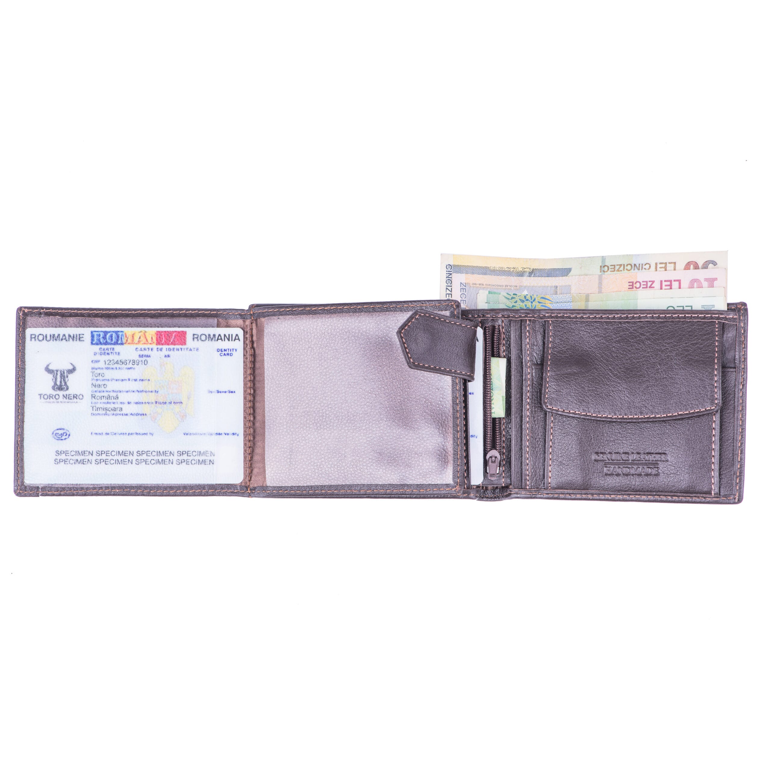 Pielea naturală folosită în procesul de manufacturare pentru portofelele TORO NERO este piele italiană de o calitate superioară. Eventualele mici imperfecțiuni din textură sunt datorate fibrei naturale a pielii. Acest aspect scoate în evidență autenticitatea și calitatea pielii folosite.