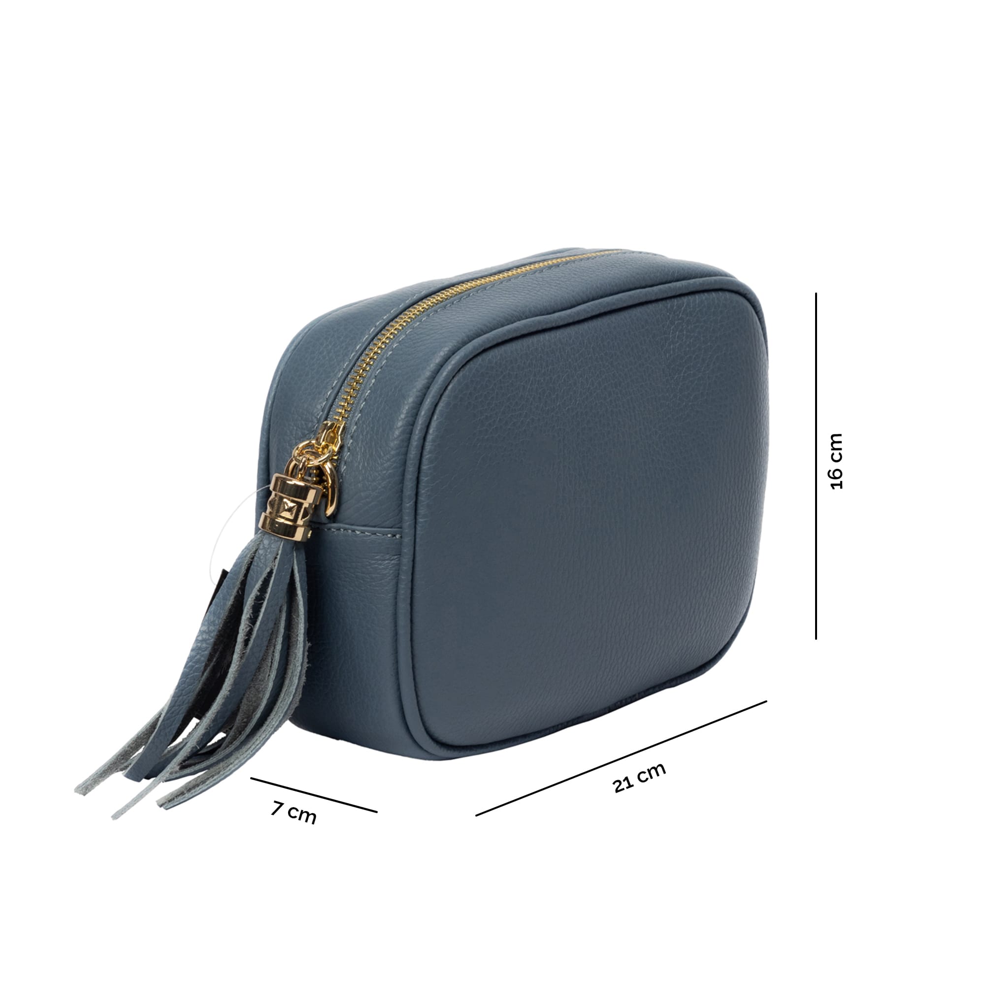 Geanta pentru femei “Little Secret” de la Toronero este o piesă elegantă și sofisticată, perfectă pentru a completa orice ținută. Fabricată din piele naturală de înaltă calitate într-o nuanță atrăgătoare de albastru deschis, geanta emana rafinament și stil.Designul său compact și practic oferă suficient spațiu pentru a stoca toate obiectele esențiale, cum ar fi portofelul, telefonul mobil, cheile și cosmeticele. Compartimentul principal este prevăzut cu fermoar pentru a asigura siguranța obiectelor personale, iar buzunarele interioare oferă organizare suplimentară.Geanta dispune de o curea reglabilă și detasabilă, astfel încât poate fi purtată confortabil pe umăr sau ca o geantă de mână eleganta. Detaliile metalice de calitate superioară completează aspectul sofisticat al gentii.Cu geanta “Little Secret” de la Toronero, veți adăuga un strop de stil și eleganță fiecărei ținute, devenind astfel un accesoriu indispensabil în garderoba unei femei moderne și rafinate.