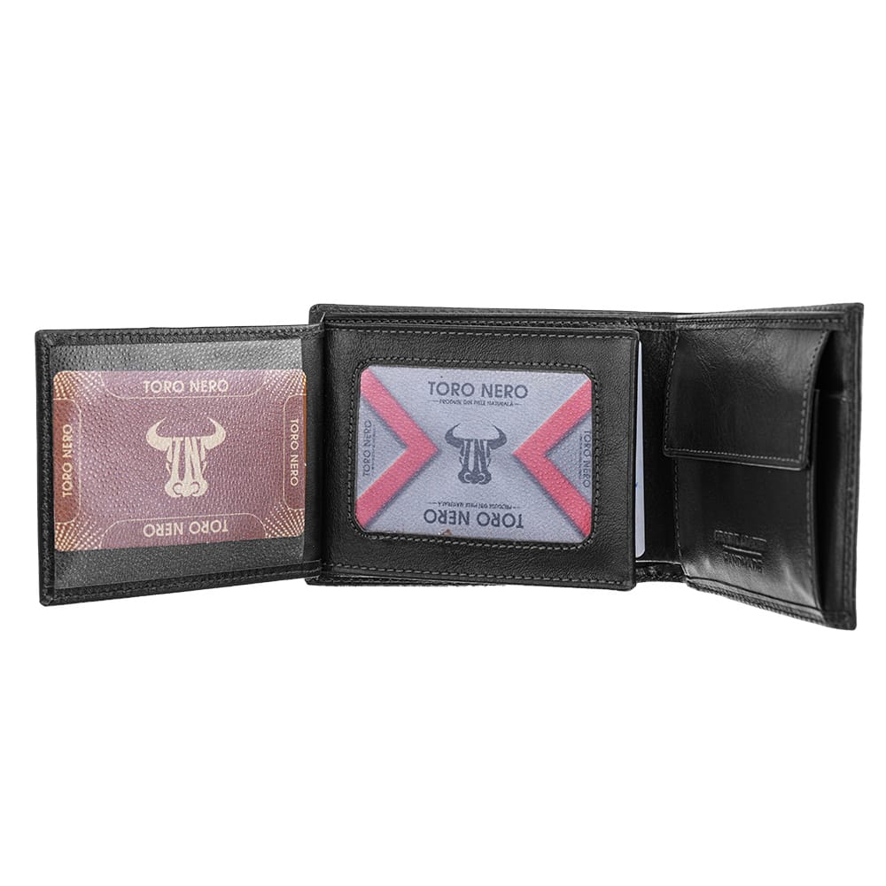 Pielea naturală folosită în procesul de manufacturare pentru portofelele TORO NERO este piele italiană de o calitate superioară. Eventualele mici imperfecțiuni din textură sunt datorate fibrei naturale a pielii. Acest aspect scoate în evidență autenticitatea și calitatea pielii folosite.