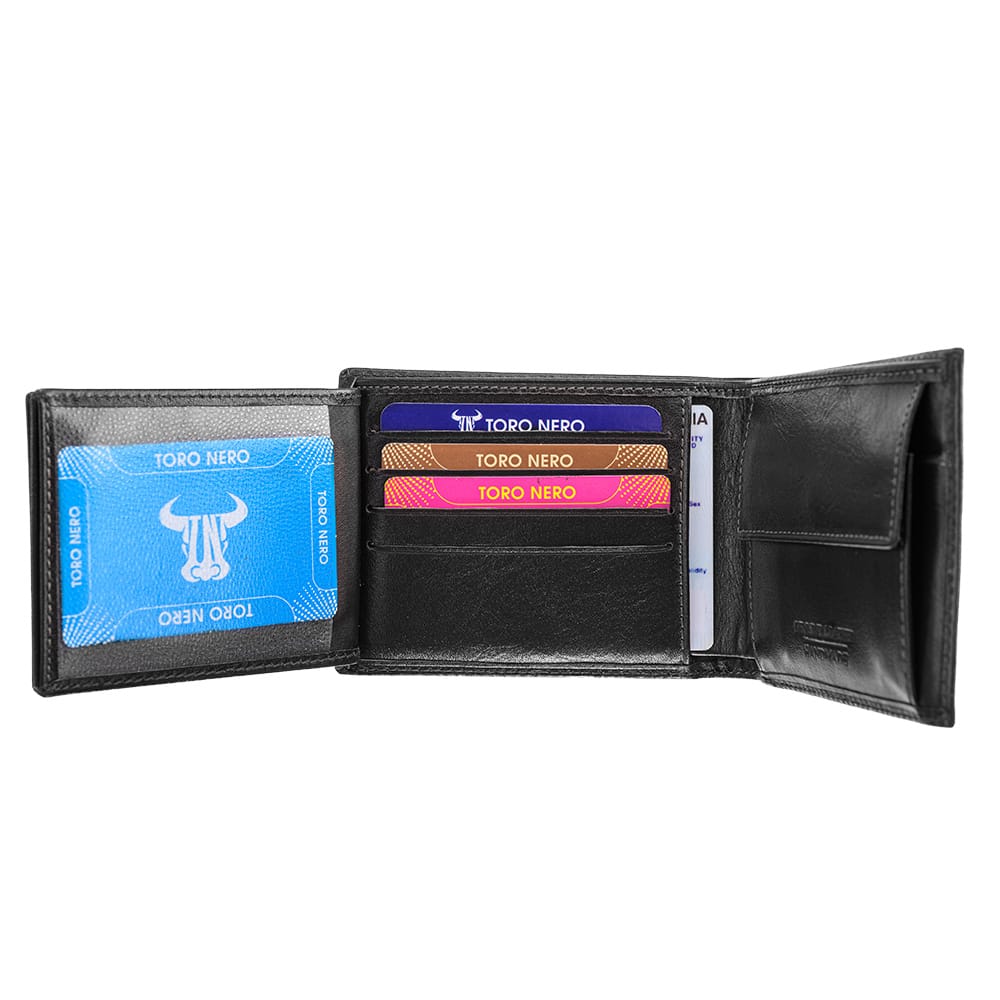 Cu acest portofel TORO NERO din piele naturală nu trebuie să îți faci griji că vei rămâne fără spațiu pentru cele mai importante lucruri din viața ta. Portofelele noastre sunt lucrate manual din piele de calitate superioară.