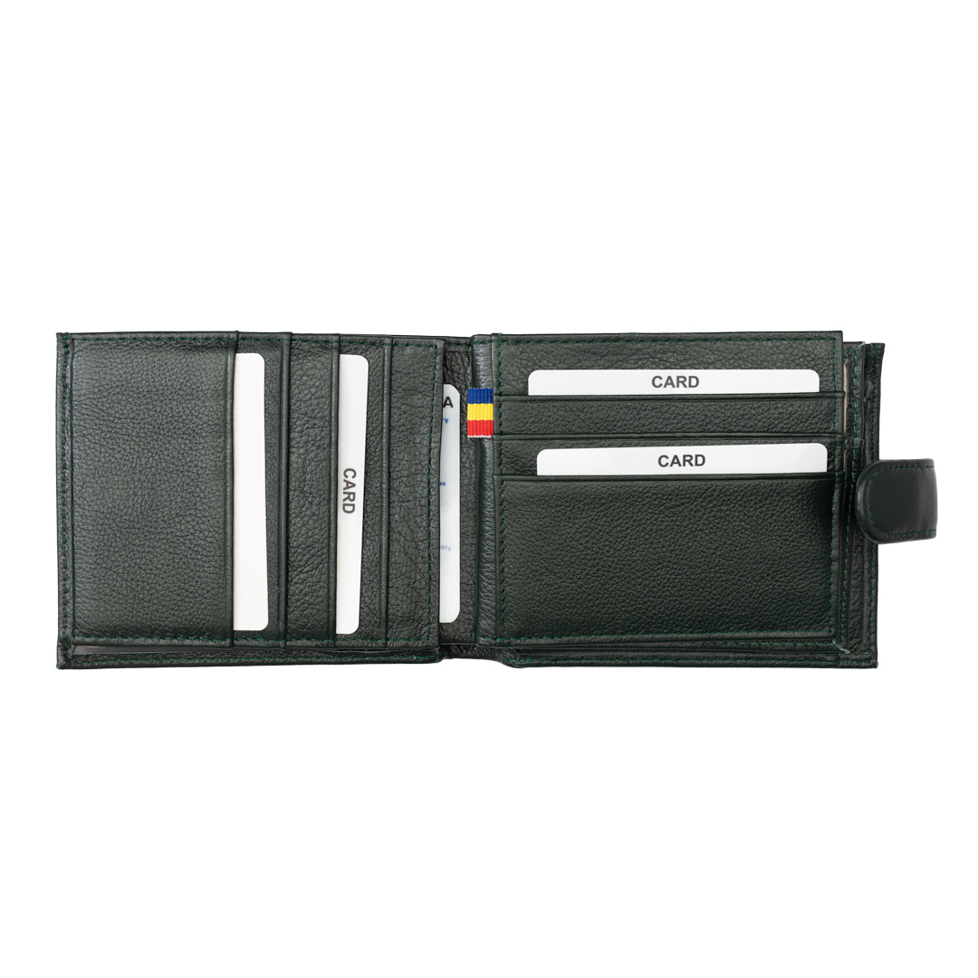 Portofelul din piele naturală Casual Code Verde a fost gândit pentru a putea fi introdus cu ușurință în buzunare.