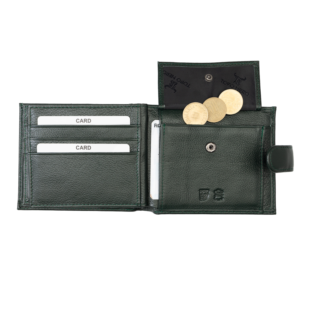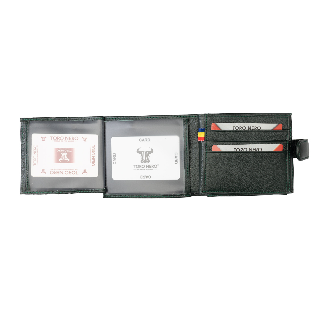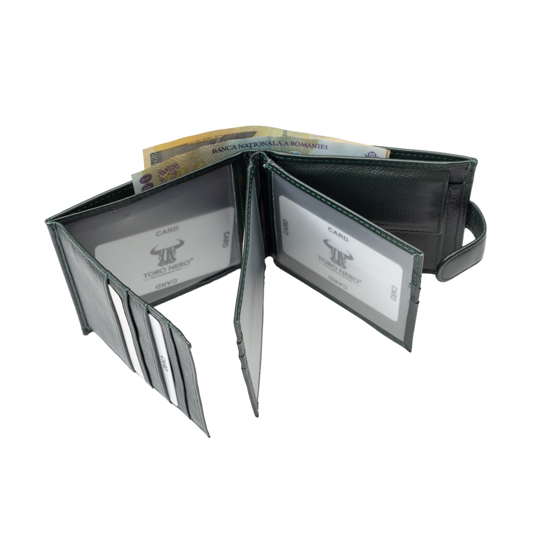 Portofelul are un design simplu și clasic, cu linii curate și o estetică minimalistă. Culoarea verde conferă un aspect sobru și versatil, putând fi integrat într-o varietate de stiluri vestimentare.Portofelul este proiectat pentru a vă ajuta să vă păstrați cardurile, bancnotele și alte documente în ordine. Compartimentele și buzunarele multiple oferă suficient spațiu pentru a vă organiza elementele esențiale. Acest fapt se datorează celor 18 compartimente generoase ale modelului Casual Code. Astfel, vei putea să păstrezi în portofel lucrurile care contează pentru tine și stilul tău de viață, precum: monede, bancnote, buletin, carduri bancare sau de fidelitate.Cu acest portofel TORO NERO din piele naturală nu trebuie să îți faci griji că vei rămâne fără spațiu pentru cele mai importante lucruri din viața ta.Logo-ul brandului „Toronero” este prezent pe portofel, simbolizând calitatea și autenticitatea produsului.